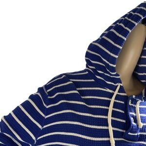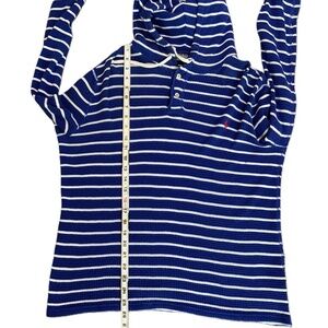 Polo by Ralph Lauren Blue Striped Drawstring Hoodie Top Size Medium Preppy Grunge
