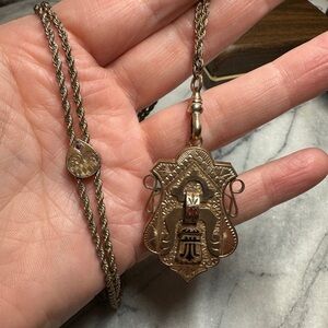 Antique Victorian gold-filled locket pendant with a red stone accent and intricate details! Locket is on the back side. Very beautiful piece! Would make a great gift. FIRM on price, no offers please. Same day or next day shipping! I do cross post everything on multiple sites, so get it while you can! Because I list everything on multiple platforms, all sales are final, no returns. Chain NOT included