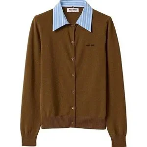 Miu Miu Brown Cashmere Detachable-Collar Cardigan — Size Small (IT 38)