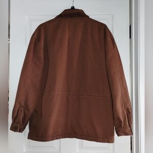 Experience timeless style with this brown field jacket. Ideal for any adventure, it combines durability with a classic look. This jacket is in great vintage condition.It features 2 front pockets with snap closure.And also has a left chest pocket inside. The last picture shows what appears to be a small black mark .But with the dark brown color of the jacket it's not very noticeable.