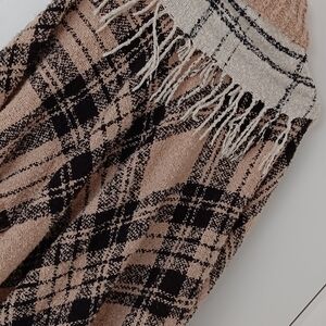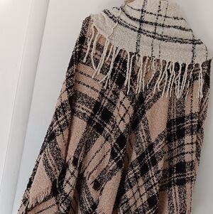 Stylish and Gorgeous! Poncho and shawl with plaid and knit design. One Size Fits Most. Features black, cream, and tan colors. (NWOT)