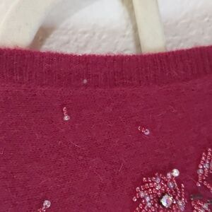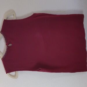 Bloomingdale's Burgundy Embellished sleeveless Top Lambs Wool Angora Classic l