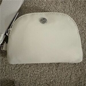Chic dual pouch wristlet by Lululemon Athletica. Features an iridescent pouch and a cream pouch. Ideal for carrying essentials.