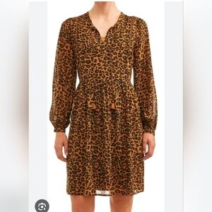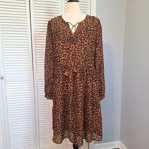 Stylish leopard print dress with long sleeves. Comfortable and trendy. Ideal for any outing. pullover and fully lined. size is medium. armpit to Armpit is 18", shoulder to hem is 38". excellent condition