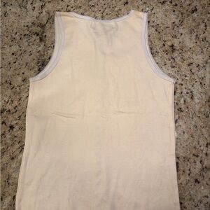 Stylish cream tank top featuring button detail down the front. Perfect for casual wear. TRUE VINTAGE, had tags on it but they came off when I washed it.