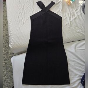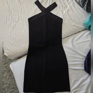 like new, no flaws. black ribbed bandage dress with criss-cross neck. babaton by aritzia, size medium