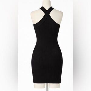Aritzia Babaton Black Ribbed Halter Bodycon Dress | Cross-Neck | Size M