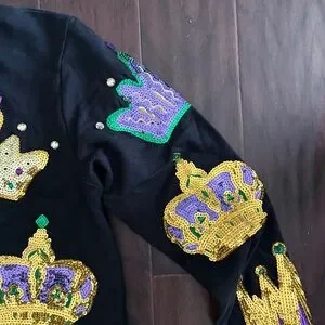 Mardi Gras Crown sparkle Embellished Black Sweatshirt small