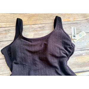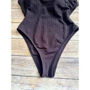 NWT. No boundaries. Size large 12/14. One piece swimsuit. Rich black color. Inner shelf bra(removable cups). Moderate coverage. High leg silhouette. Crinkle texture. Scoop front. Scoop back.