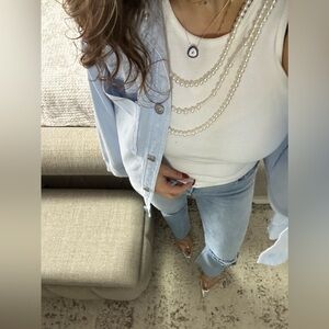 This top is one of those easy, wear-it-a-hundred-ways pieces. I love the length because it works buttoned up, worn open, or fully tucked without feeling bulky. The soft blue shade is so flattering and gives that effortless, polished-casual vibe that works year round. A great everyday staple you’ll keep reaching for 🤍