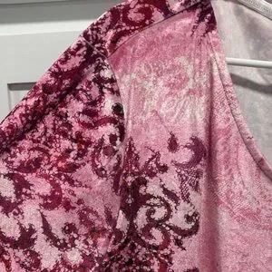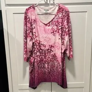 Elegant tunic with intricate pink and purple patterns. Soft fabric and relaxed fit. Perfect for casual outings. Size 2X ❤️❤️❤️❤️