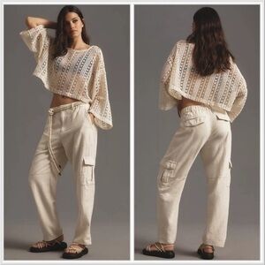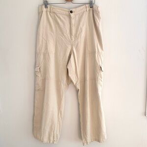 Anthropology Pilcro Slim Linen Blend Beach Cream Cargo pants size XL