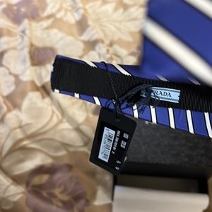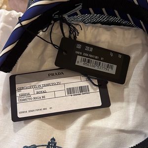 Elegant blue and white striped headband. Features colorful floral embroidery. Perfect for adding a chic touch to any outfit.