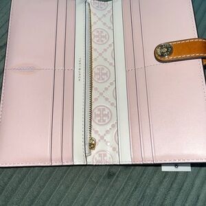 Tory Burch Embossed Contrast Signature Logo Pink and Cream Wallet