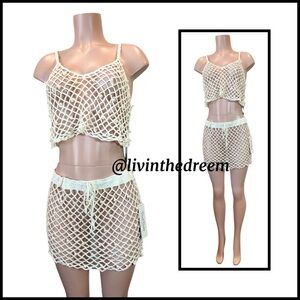 Turn heads on your next beach getaway with our Sunkissed Crochet Tank & Mini Skirt Featuring a crochet with pearl details, perfect for layering over your favorite bikini.