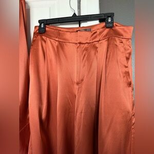 Chic wide-leg pants in terracotta. Comes with matching button down top. Pants are 10 SHORT and top is medium. Both are 100% silk. Top is NWT and Bottoms are NWOT - never worn it just fell off.