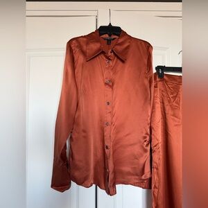 Banana Republic 100% Silk Terracotta Belay Wide-Leg Pants and Button Down