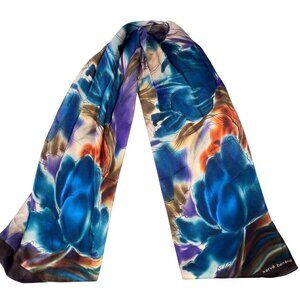 Vtg Harvé Benard Floral Silk Scarf Blue Orange Watercolor Designer Vibrant Art