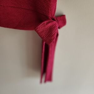 Stylish hot pink textured three quarter length sleeve. Features a chic tie detail on the side.