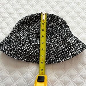H&M Women's Black and White Textured Tweed Bucket Hat Size L