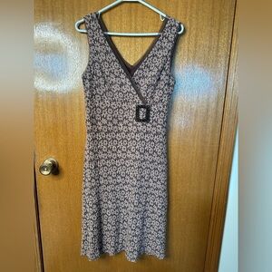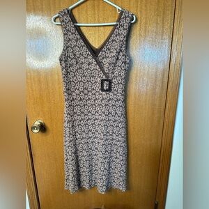 Elevate your wardrobe with this elegant Joseph Ribkoff sleeveless dress in size 10, featuring a timeless brown and cream floral print.