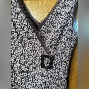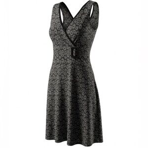 • Details: Faux wrap front with a decorative black buckle accent at the waist