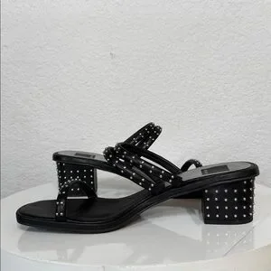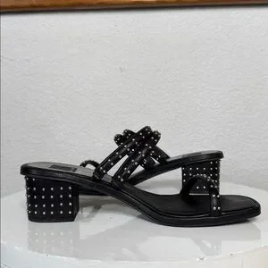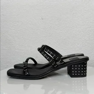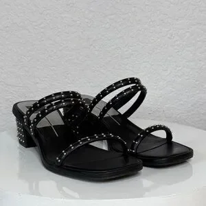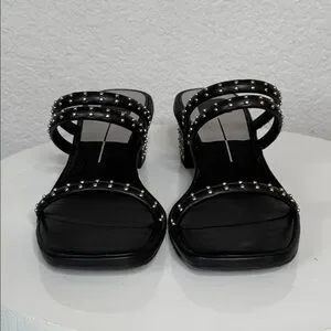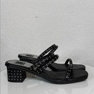 DOLCE VITA STELLA RYE BLACK LEATHER STUDDED STRAPPY HEELED SANDALS