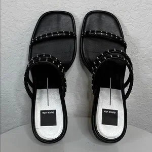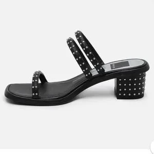 Feel chic with a bit of edge in any outfit with the '90s-inspired Stella Rye sandal from Dolce Vita. A square open toe complements the block heel that's covered with silver studs, matching the three straps on the vamp.