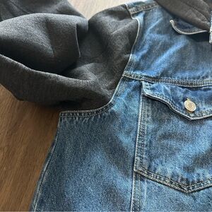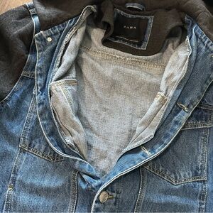 Zara Men's Denim Jacket, Sweatshirt Hood/Sleeves, Mixed Media, Jean, Trendy, XL
