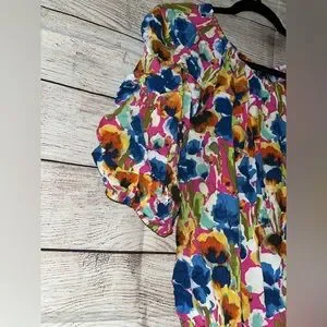 🤎3/$10 Coco Blanco Colorful Floral Puff Sleeve Blouse Size Small