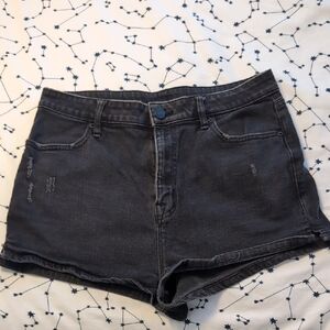 Chic black jean shorts. Perfect for everyday wear. Thrifted, too small for me.