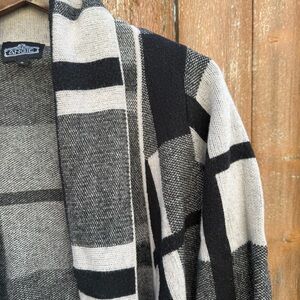 ANGIE Women’s Black Gray Plaid Open Front Cardigan Size Small