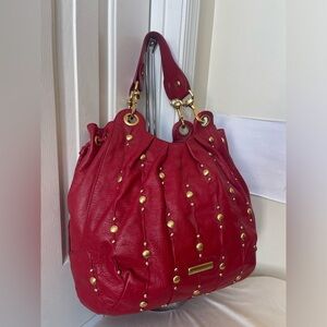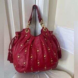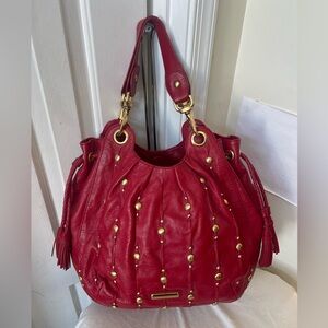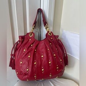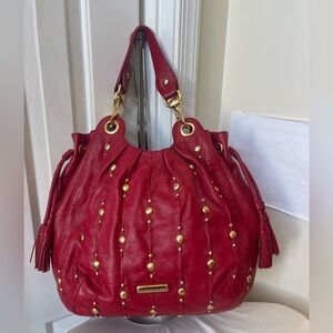 Isabelle Fiore Red Leather Studded Handbag EUC