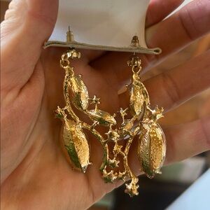 Add a touch of elegance with these stunning gold and crystal drop earrings. Perfect for any occasion.