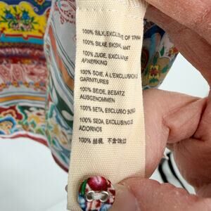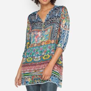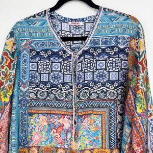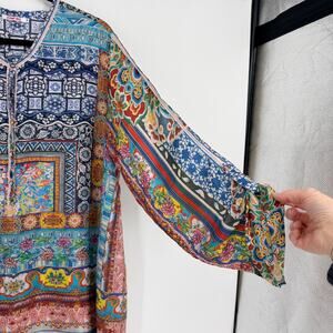 Johnny Was 100% Silk Boho Patchwork Print Roll Tab Sleeves Womens Plus Size 1X
