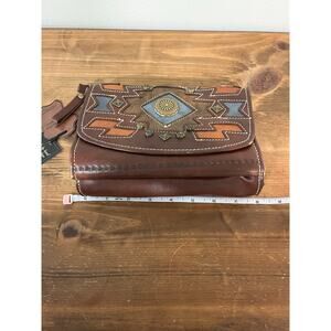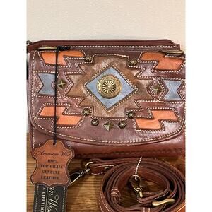 American West Genuine Leather Tooled Crossbody Bag Wallet Boho Western Studded