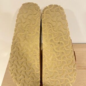 Birkenstock Tan Slides with Gold Buckle