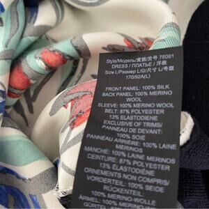 Tory Burch NWTS Silk Front Shirtdress Navy Blue Porcelain Thistle Sweater Back size large. Hardware on belt and buttons still covered. Measurements laying flat chest 21 inches across and length 44 inches long. Retail 498