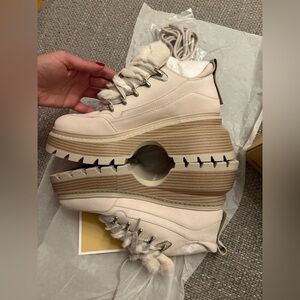 Michael Kors Shiloh Bootie Bone Platform Boots Real Leather Size U.S. 8.5 NWT
