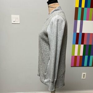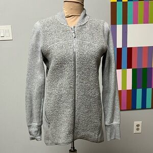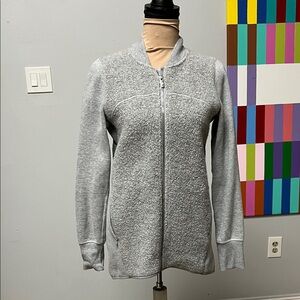 Gently Used. Stylish gray zip-up jacket. Soft and comfortable. Perfect for layering.