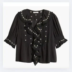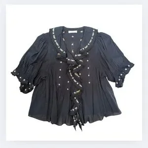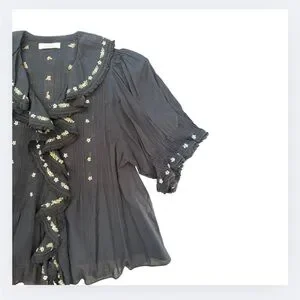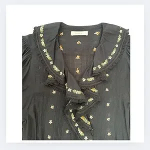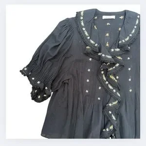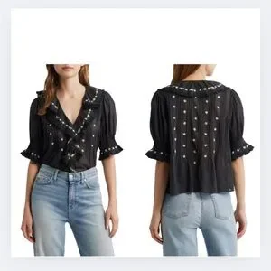 DÔEN Hettie Embroidered Ruffle Organic Cotton Top | Size L