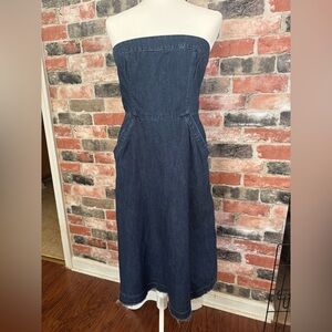 Anthropologie Holding Horses A-Line Denim Strapless Dress, Size 10
