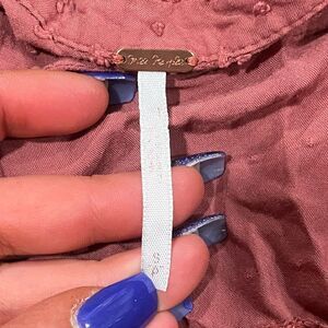 Free People Rose Pink Rayon Button Front Blouse Swiss Dot Size S