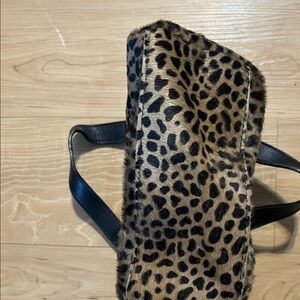 Stylish tote with bold animal print. Features sturdy black leather straps. Perfect for everyday use.