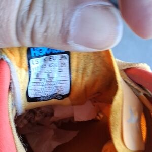 shoes are in very very good condition super comfy and lightweight pair.Dynamic Hoka sneakers in bright orange and yellow. Ideal for running.