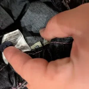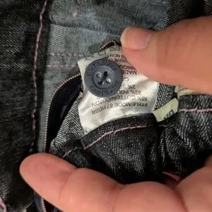 Stylish denim skirt with pink stitching accents. Ideal for everyday wear.