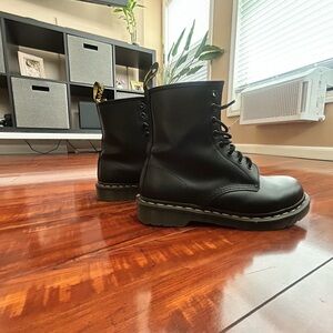 Stylish Dr. Martens black leather boots with durable construction and classic design. Nearly new. Excellent condition.