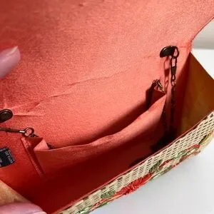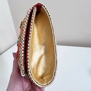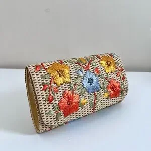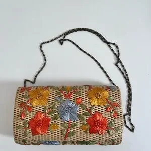 Anthropologie Garden Route Clutch Floral Raffia Embroidered Woven Purse Bag
