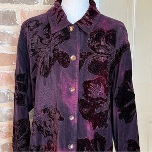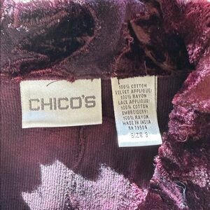 Chicos Burgundy Floral Appliqués Velvet Button-Up Jacket Sz 3/XL
