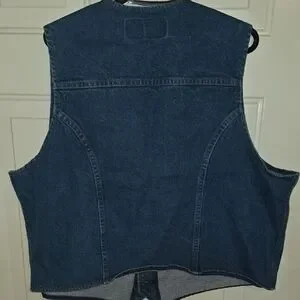 Rugged denim vest by Wrangler. Features button closure and dual front pockets. Ideal for casual wear.